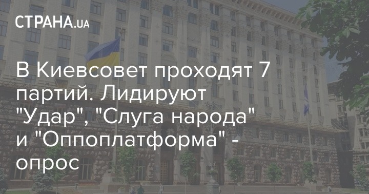 В Киевсовет проходят 7 партий. Лидируют "Удар", "Слуга народа" и "Оппоплатформа" - опрос