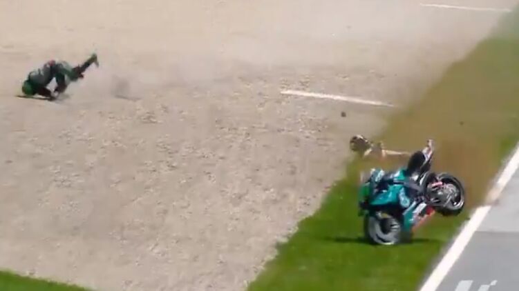 Итальянский и французский мотогонщики Франко Морбиделли и Джоанн Зарко попали в аварию на этапе Гран-при в Австрии, в Шпильберге. Их байки развалились на несколько частей, а спортсмены чудом выжили.