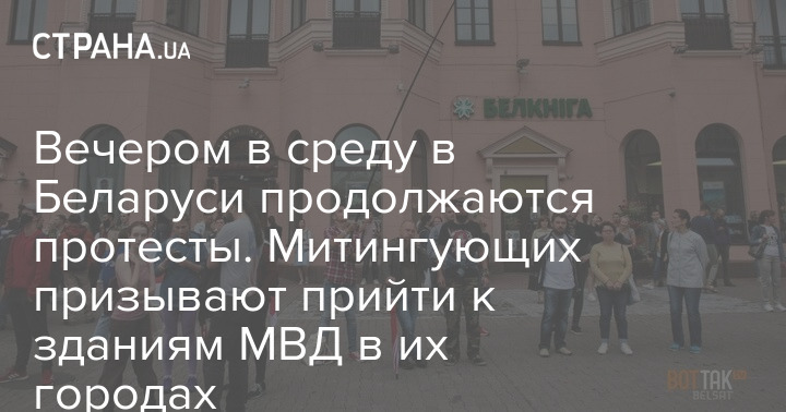 Вечером в среду в Беларуси продолжаются протесты. Митингующих призывают прийти к зданиям МВД в их городах