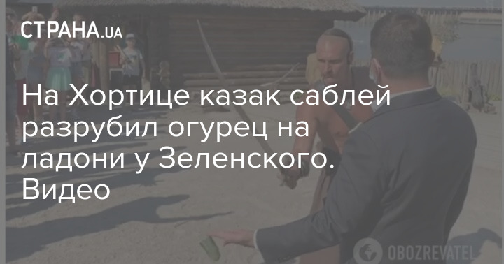 На Хортице казак саблей разрубил огурец на ладони у Зеленского. Видео