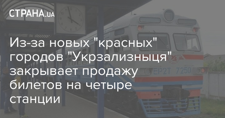 "Укрзализныця" из-за нового деления регионов на карантинные зоны в Украине, которое вступит в силу с понедельника, 24 августа, закрывает продажу билетов на некоторые станции.