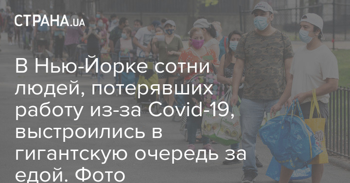В Нью-Йорке сотни людей, потерявших работу из-за Covid-19, выстроились в гигантскую очередь за едой. Фото