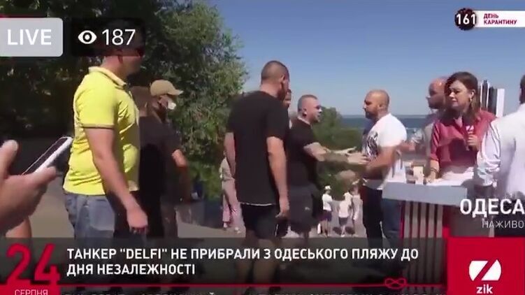 Ведущими прямого эфира из Одессы, который транслировался с Приморского бульвара, были Артем Бибик и Дария Муринская. Они пытались продолжать прямое включение, несмотря на нападение радикалов. А народный депутат Татьяна Плачкова обвинила в срыве телеэфира мэра Одессы Геннадия Труханова.