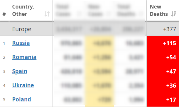 По смертям Украина еще вчера вышла на четвертое место в Европе.