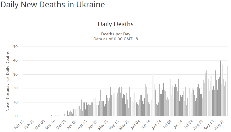 Статистика ежедневных смертей от ковид в Украине. Источник - Worldometer