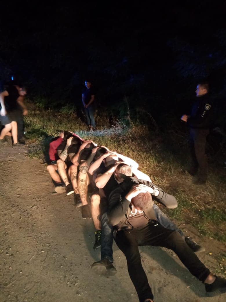 Также Геращенко опубликовал ряд фото, на которых видно, что нападавшие задержаны. Их как минимум семь человек. Почти все обрисованы татуировками.