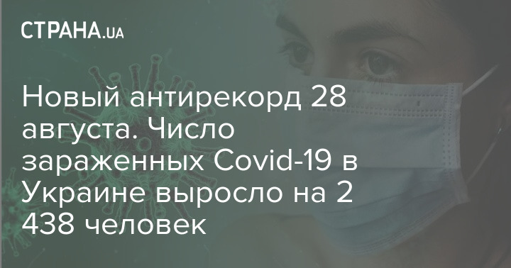 В Украине, по состоянию на утро пятницы, 28 августа, за сутки зафиксировано 2 438 новых случаев заражения Covid-19. И это очередной антирекорд (предыдущий был отмечен 22 августа, когда заразились 2 328 человек - Ред.)