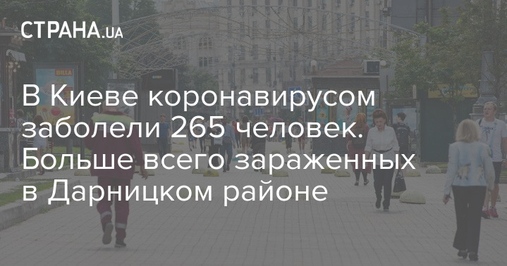 В Киеве коронавирусом заболели 265 человек. Больше всего зараженных в Дарницком районе