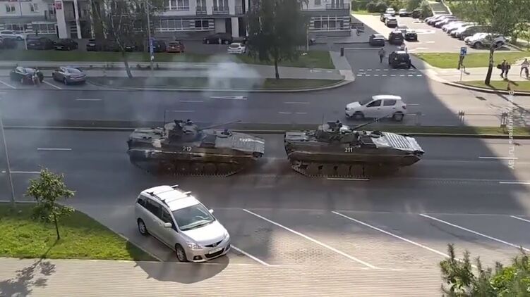 Так жители Минска запечатлели несколько БМП, которые предположительно направляются в сторону протестующих.