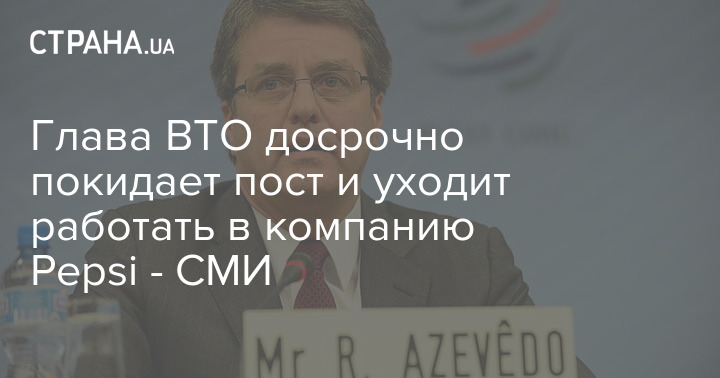 Генеральный директор Всемирной торговой организации (ВТО) 62-летний Роберто Азеведо досрочно покидает должность. Он на год раньше срока складывает полномочия и уходит работать в компанию Pepsi.