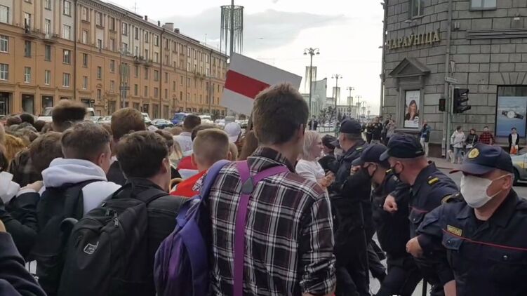 Десятки студентов, которые вышли 1 сентября на протесты в Минске, прорвали оцепление милиции на Проспекте независимости рядом со зданием КГБ.