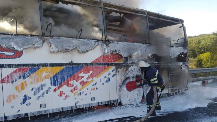 "1 сентября в 15:25 в оперативно-диспетчерскую службу Ставищенского района поступило сообщение о возгорании автобуса "СЕТРА" на трассе Киев - Одесса вблизи села Снежки", - говорится в сообщении.