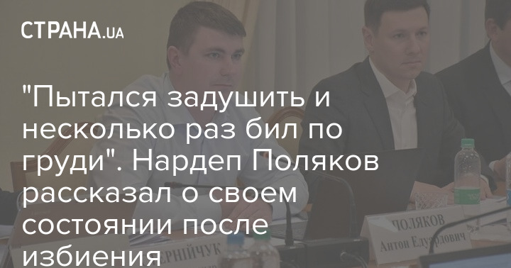 "Я бы не сказал, что это избиение. Просто человек немножко неадекватный напал, пытался задушить и пару разу в грудную клетку получил [от него]", сказал Поляков.