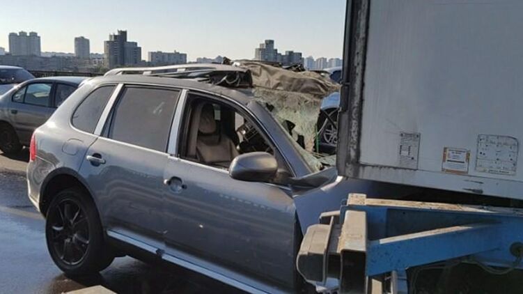 "Находясь на мосту, водитель в нарушение правил дорожного движения начал выполнять маневр разворота через двойную сплошную. В этот момент в него врезался Porsche Cayenne, который двигался позади в попутном направлении со скоростью 150 км/ч. В результате мощного удара пассажир, сидевший на переднем сиденье Porsche Cayenne, от полученных травм погиб на месте", - говорится в сообщении.