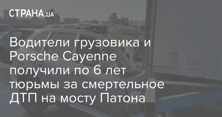 В Киеве суд приговорил к шести годам лишения свободы двоих водителей, которых признали виновными в смертельном ДТП. Водитель грузовика под наркотиками пытался развернуться через двойную сплошную, в это время в него врезался Porsche Cayenne, водитель которого был лишен прав управлять авто за вождение в нетрезвом виде. При столкновении погиб пассажир внедорожника. Об этом сообщается на сайте прокуратуры Киева.