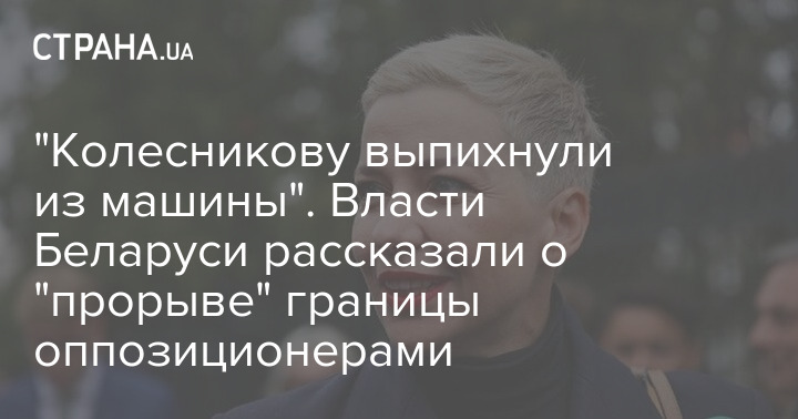 Государственный пограничный комитет республики (ГПК) сообщил, что при прорыве через границу автомобиль с белорусскими оппозиционерами Антоном Родненковым и Иваном Кравцовым проехал в сторону нашей страны, но без Колесниковой. Пограничники указывают, что ее буквально "выпихнули" из салона и сейчас она задержана.