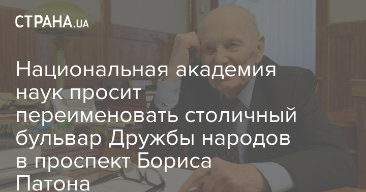 "С целью увековечения в городе Киеве памяти академика Бориса Патона Президиум Национальной академии наук Украины принял решение об обращении НАН Украины в Киевскую городскую государственную администрацию с предложением переименовать бульвар Дружбы Народов в городе Киеве в проспект Бориса Патона", - говорится в сообщении.