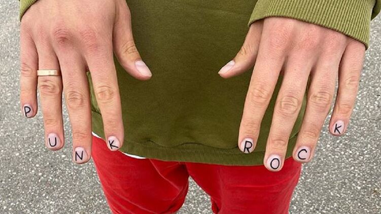Журналист продемонстрировал свой маникюр с надписью "punk rock" на ногтях, который держится долгое время и вызывает у него восторг: "Уже две недели гоняю вот так. Ощущения - кайф!", - пишет он.