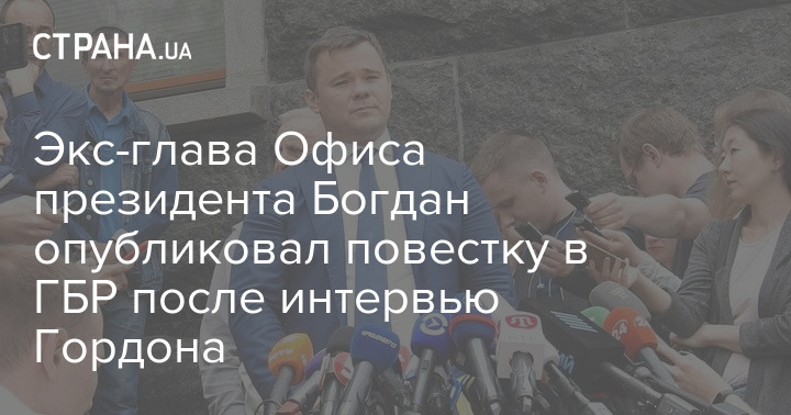 Экс-глава Офиса президента Богдан опубликовал повестку в ГБР после интервью Гордона