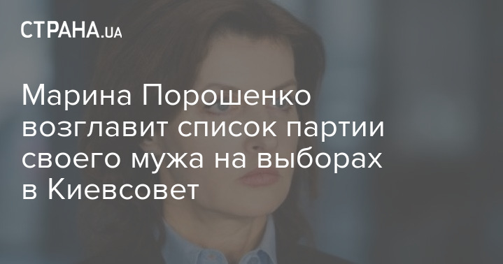 Как и предсказывала "Страна", Петр Порошенко не будет баллотироваться на пост мэра Киева, а команду "Европейской солидарности" на выборах в Киевсовет возглавит его жена - Марина Порошенко. Кроме того партия поддержит кандидатуру действующего мэра Виталия Кличко на выборах городского головы.