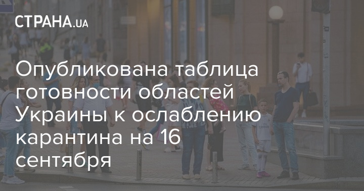 Опубликована таблица готовности областей Украины к ослаблению карантина на 16 сентября
