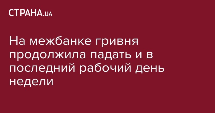 Курс гривни на межбанковском валютном рынке в пятницу снизился до 25,46 грн/$1 с 25,43 грн/$1 в предыдущий рабочий день, сообщили агентству "Интерфакс-Украина" дилеры коммерческих банков.
