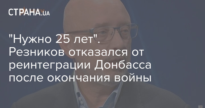 Вице-премьер Алексей Резников заявил, что после окончания войны на Донбассе реинтеграции региона не произойдет. Он уточнил, что на это нужно минимум 25 лет.