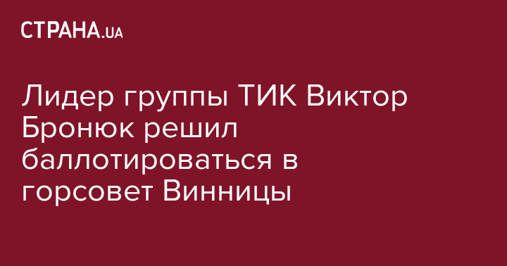 Лидер украинской группы "ТИК" Виктор Бронюк намерен баллотироваться в депутаты Винницкого городского совета. Он будет первым номером в списке "Партии Винничан".
