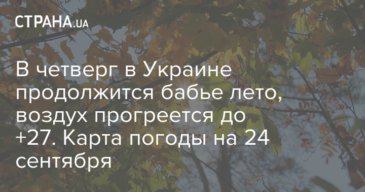 В четверг, 24 сентября, в Украине будет солнечно и сухо. Локальные дожди ожидаются только в западных областях.