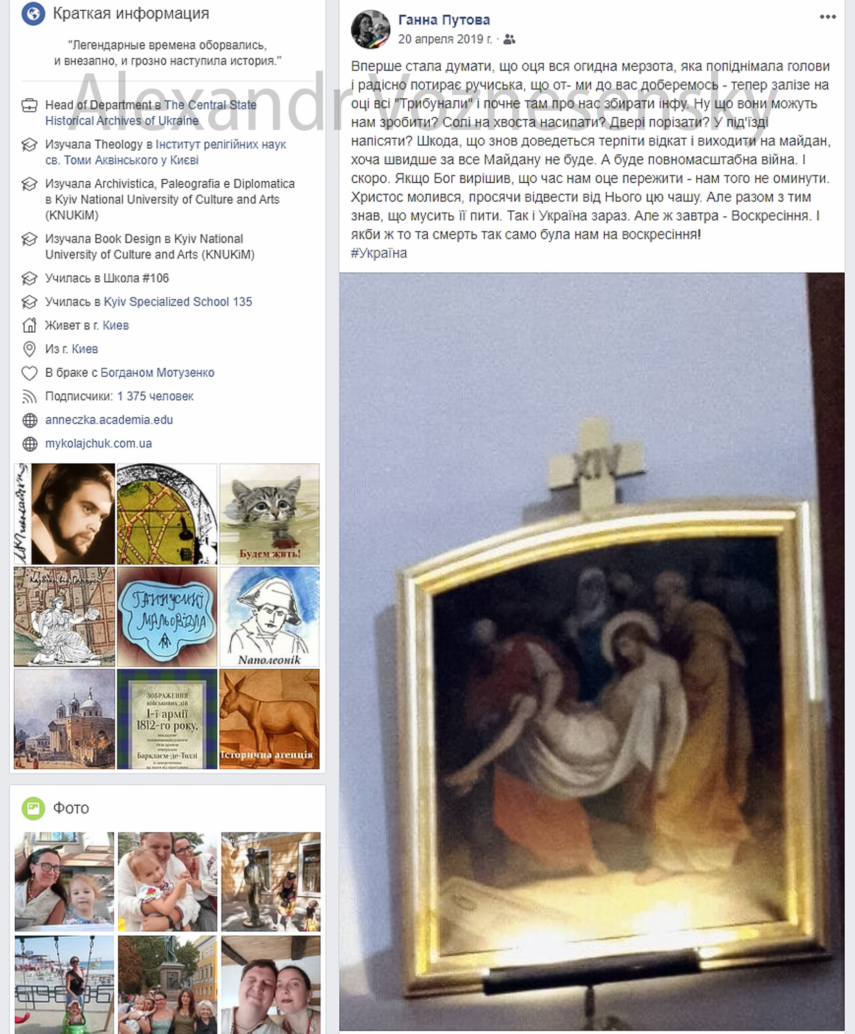 На снимок, который был сделан в прошлом году, в разгар выборов президента в Украине, обратил внимание блогер Александр Вознесенский, который сделал скриншот закрытых (только для друзей) постов Путовой.
