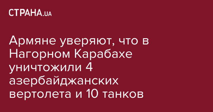 Военные Армении заявили, что в ходе сегодняшнего, 27 сентября, обострения конфликта в Нагорном Карабахе Азербайджан потерял четыре вертолета, десять танков и БМП.
