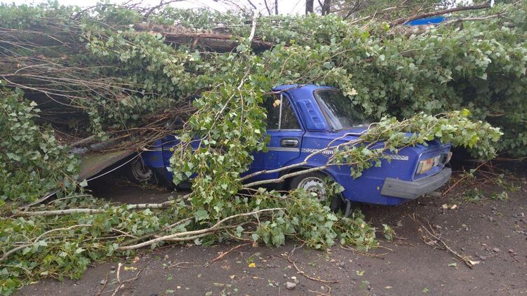 "Сегодня в результате урагана и сильной грозы в пгт Великая Александровка повалены деревья, повреждены провода на линиях электропередач и значительно повреждены крыши домов и других сооружений. К счастью, обошлось без жертв", - говорится в сообщении.