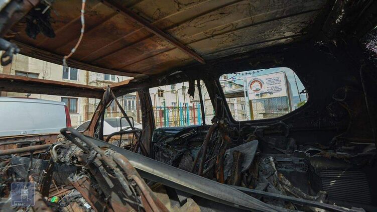 На фото видны опустевшие дворы столицы Нагорного Карабаха, поврежденные и сгоревшие автомобили, следы от пуль, а также мешки с песком, которые, очевидно, служили укрытием.