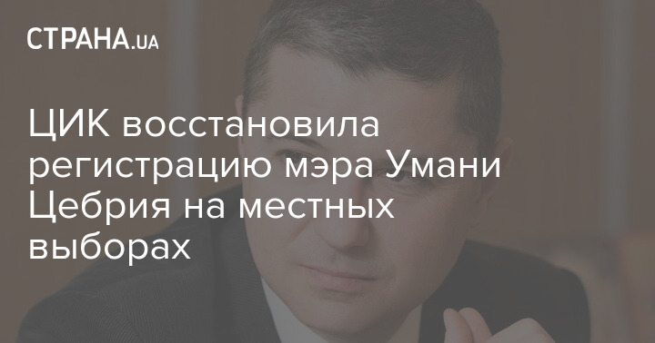 Центральная избирательная комиссия Украины отменила решение территориальной избирательной комиссии об отказе в регистрации на местных выборах мэру Умани Александру Цебрию.