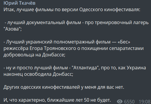 И, что характерно, ближайшие лет 50 не будет", - пишет одесский журналист Юрий Ткачев.