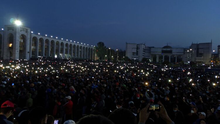 МВД республики призывало митингующих на площади Ала-Тоо мирно разойтись, однако участники митинга и его организаторы пытались нарушить общественный порядок и перекрыть движение по проспекту Чуй, а затем начали движение к зданию парламента и попытались сломать железные ворота.