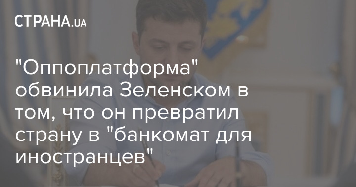 "Оппоплатформа" обвинила Зеленском в том, что он превратил страну в "банкомат для иностранцев"