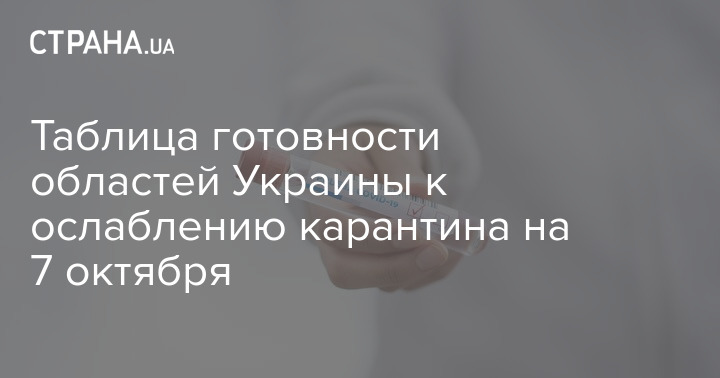 Таблица готовности областей Украины к ослаблению карантина на 7 октября