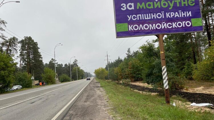 Так, измененная реклама партии "За будущее" была замечена вдоль Парковой дороги и на Столичном шоссе в Киеве. На придорожных билбордах размещены наклейки с именем Коломойского.