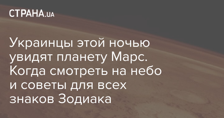 14 октября в 2:28 по киевскому времени Марс будет ближе всего к Земле - на расстоянии 62,6 миллиона километров, но наблюдать за ним можно уже накануне. Его будет видно всю ночь даже в условиях городской засветки: появится вечером на востоке, ночью окажется на юге, а к утру перейдет на запад. В отличие от звезд, Марс светит немигающим светом.