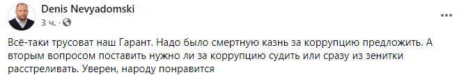 Судья Денис Невядомский предложил Зе пойти дальше и предложить смертную казнь за коррупцию.