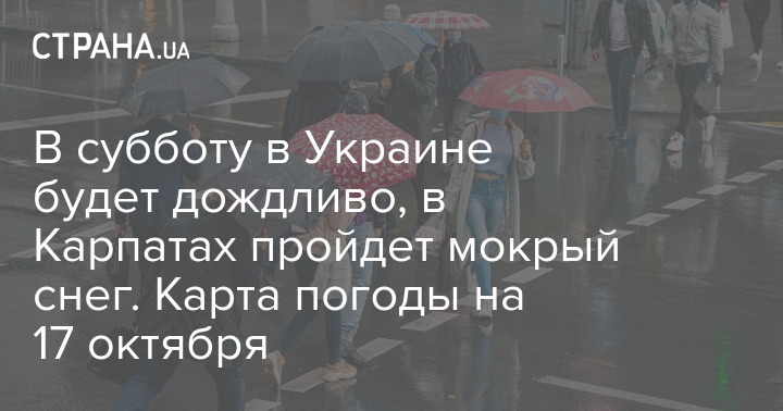 В субботу в Украине будет дождливо, в Карпатах пройдет мокрый снег. Карта погоды на 17 октября