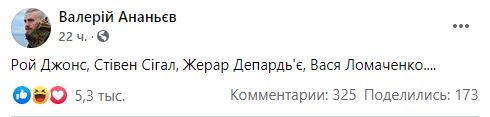 "Рой Джонс, Стивен Сигал, Жерар Депардье, Вася Ломаченко..." - перечислил участник АТО Валерий Ананьев фамилию Ломаченко среди иностранцев, которые получили гражданство России. Хотя Ломаченко никогда российское гражданство не принимал и от украинского не отказывался.
