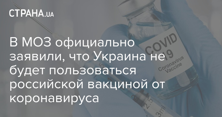 В Министерстве здравоохранения Украины отказались получать или закупать российскую вакцину от COVID-19.