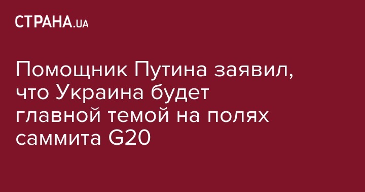 Помощник Путина заявил, что Украина будет главной темой на полях саммита G20
