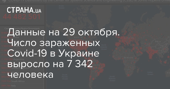 Добавим так же, что вчера, 28 октября, в Украине общее число зараженных достигло показателя в 363 075 человек. И было выявлено 7 474 новых зараженных за сутки.