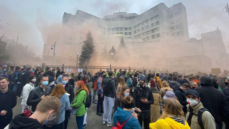 А утром 30 октября у здания Конституционного суда началась акция протеста. Протестующие забрасывают суд презервативами, но "снаряды" летят на самих митингующих.