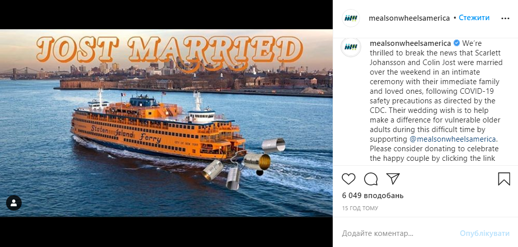 Потому в их посте, кроме поздравлений, содержалась просьба: "Их свадебное желание - помочь улучшить положение уязвимых пожилых людей в это трудное время, поддержав @mealsonwheelsamerica. Пожалуйста, подумайте о пожертвовании в честь счастливой пары, нажав на ссылку в нашей биографии"..png)