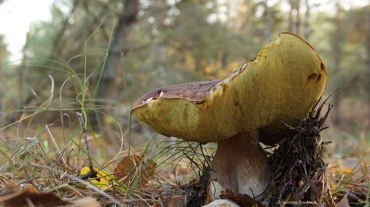 "Шляпы и шляпки. Так, все уже знают, что грибы в зоне отчуждения запрещено и собирать и вывозить за пределы радиоактивно загрязненной территории. Однако любоваться красотой, размерами и интересными очертаниями грибных форм нам никто не запрещает. Вот вроде и белый гриб, а шляпка у него выросла такой немаленькой и извилистой, словно хочет занять побольше участок земли. Даже человеческая шляпа проигрывает грибу в этом", - указано в сообщении.