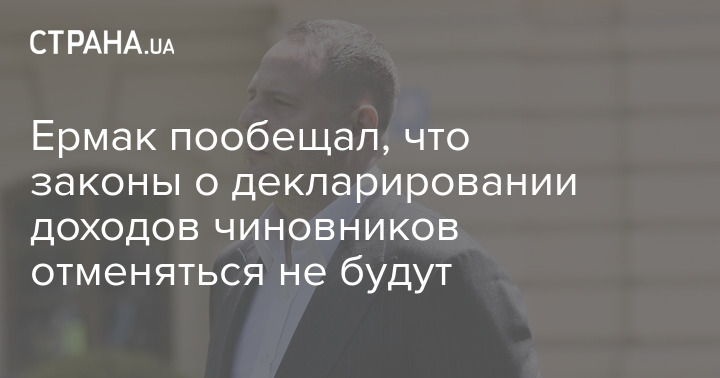 Глава Офиса президента Андрей Ермак поддержал позицию Владимира Зеленского по электронному декларированию и заявил, что законы, которые предписывают чиновникам декларировать свои доходы, не могут быть отменены даже частично.